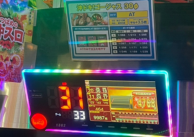 「沖ドキ!ゴージャス-30」では、4,500pt以上となっている台を確認。