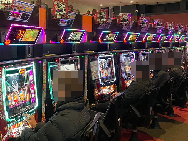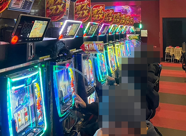 低貸し玉コーナーも人気があり、たくさんのプレイヤーが遊技中。
