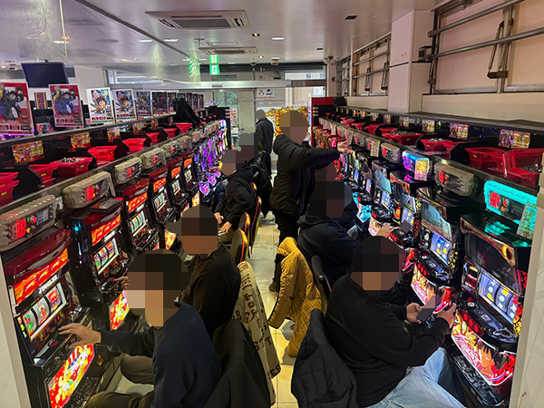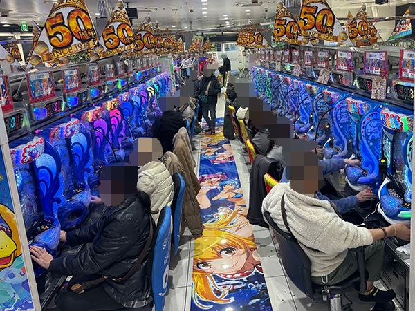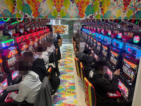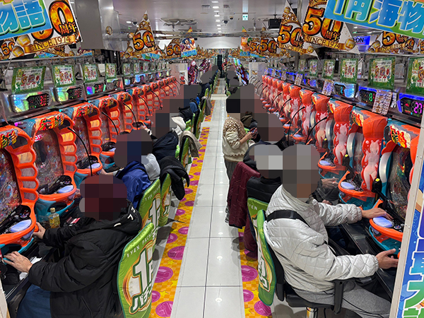 機種構成が魅力的な5円パチスロを見ると、ほぼ満席となるほどの支持を得ていた。