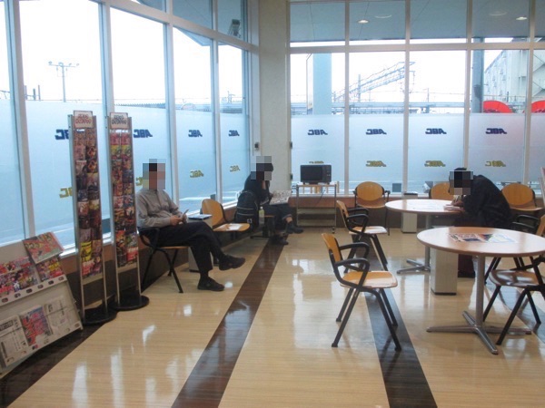 広々としたレストスペースには、テレビや雑誌、新聞が用意されており、遊技の合間に利用しているプレイヤーも多く見られた。