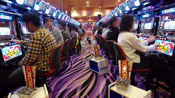 1000円/240玉パチンコでは、「ぱちんこCR真・北斗無双」が大盛況となっており、活躍を見せるプレイヤーを多数確認済み。シマ全体に華やかな光景が広がっていた。