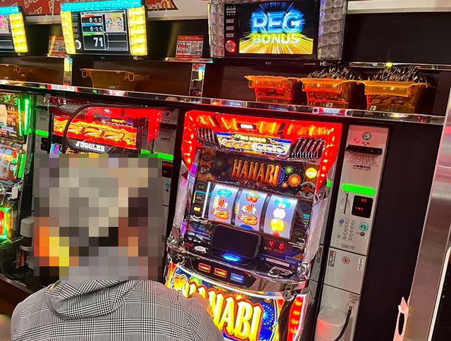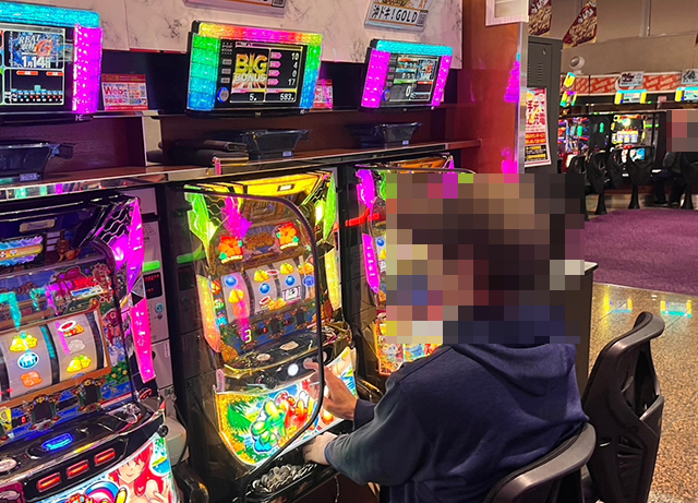 「沖ドキ!GOLD」にも、持ち玉を使い、うれしそうに遊技をおこなっている姿があった。