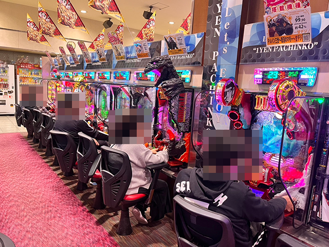 「Pルパン三世~復活のマモー~ 甘デジ」や「Pゴジラ対エヴァンゲリオン~G細胞覚醒~ PREMIUM MODEL」、「PAスーパー海物語 IN JAPAN2 with 太鼓の達人」などでも、プレイヤーは楽しげに遊技中。