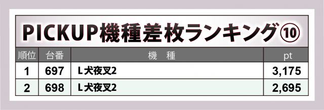 『L 犬夜叉2』4台も勝率5割を満たし、+3千2百弱・+2千7百弱と、勝負に叶うシマだったようだ。