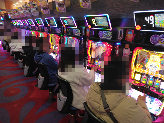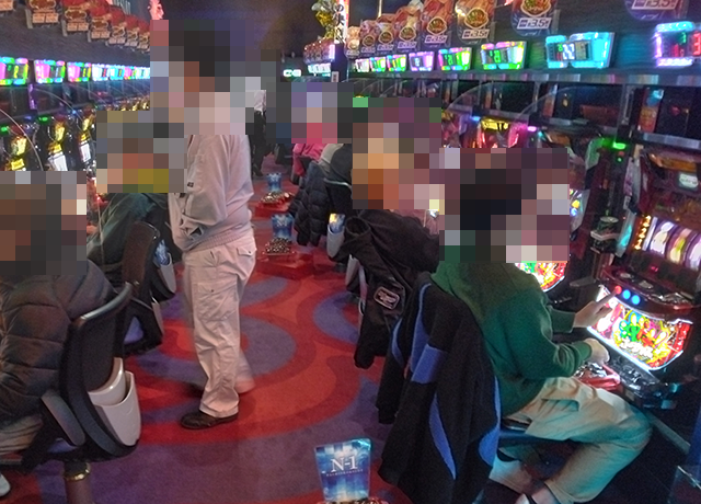 決意が感じられるシーンを求め、パチンコとパチスロの両方のシマをまわっていった。