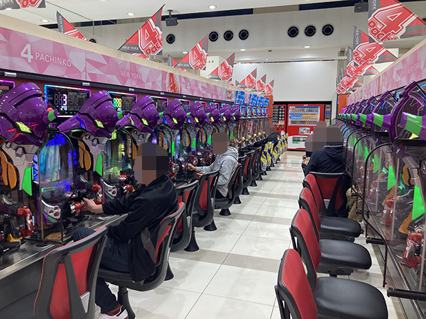 15時ごろの4円パチンコを見てみると「P大海物語5スペシャル」や「新世紀エヴァンゲリオン〜未来への咆哮〜」が活況。プレイヤーの満足そうな表情から、充実した時間を過ごしていたことがうかがえる。