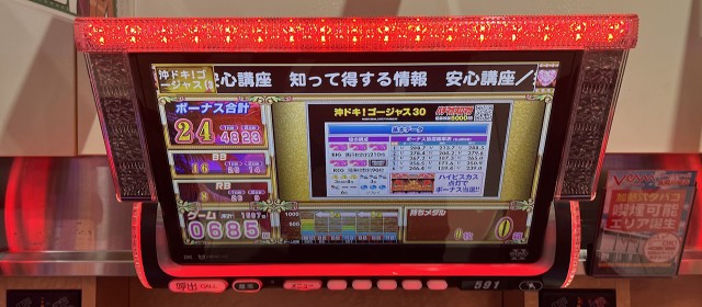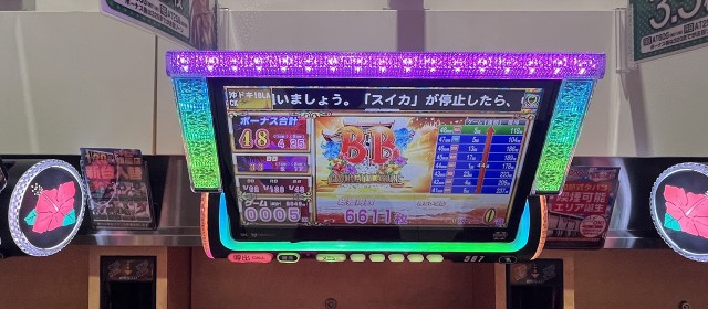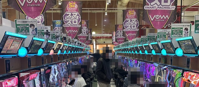 なお直前でアップした写真のように[500円/89枚] ・1&0.5パチの着席率は上々で、高レートと遜色ない熱気を放っていたことを追記しておきたい。