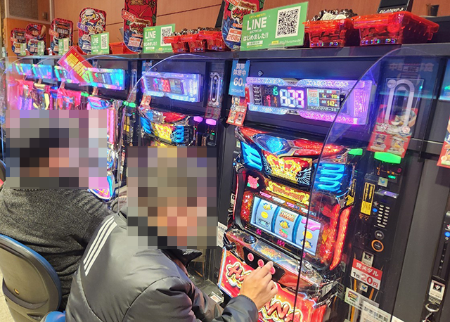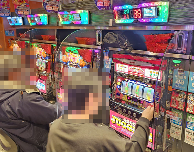 ジャグラーシリーズも人気があり、取材時に「ゴーゴージャグラー3」で2箱以上の持ち玉を確認。