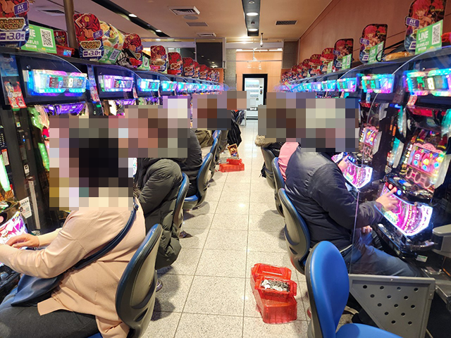 うれしそうに遊技をおこなっているプレイヤーが多く、ホール全体からにぎわいが感じられた。