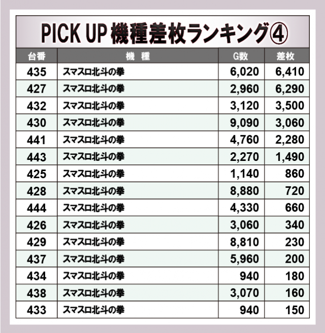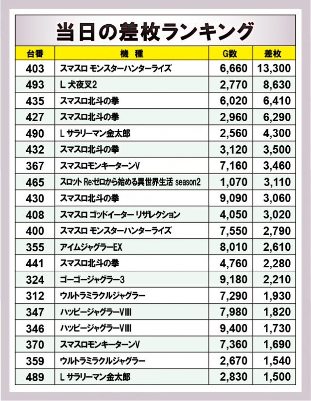 ※差枚数順に掲載しています。