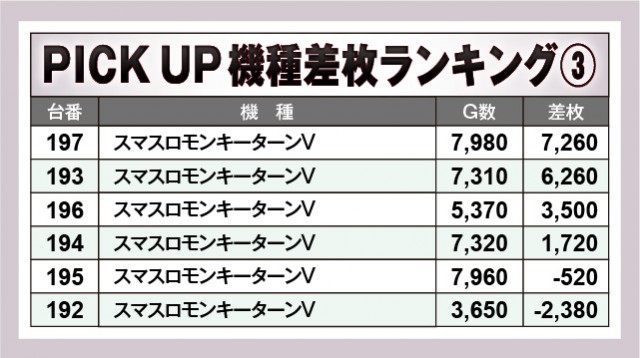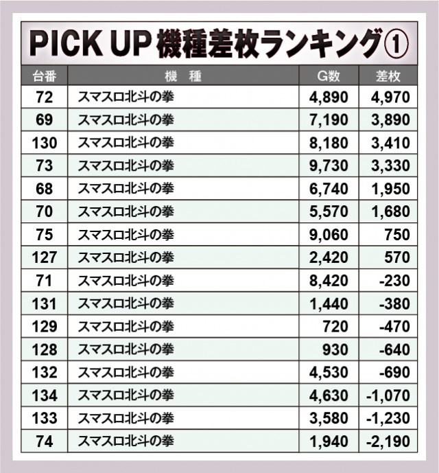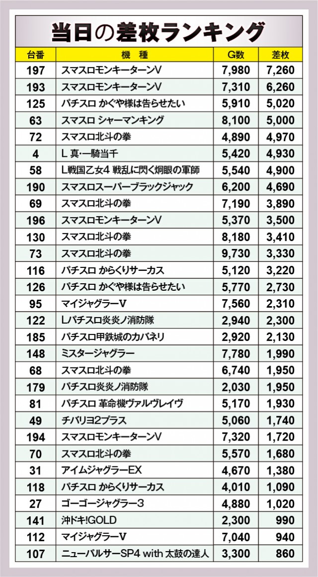 ※差枚数順に掲載しています。