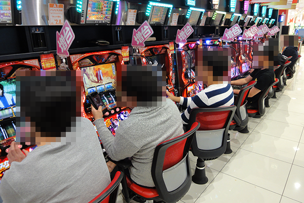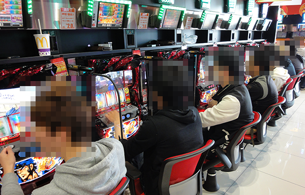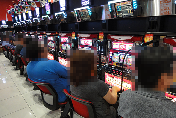 14時をまわった頃のパチスロでは、「押忍!番長3」と「バジリスク~甲賀忍法帖~絆」が盛況。朝イチから同じ台を打っているプレイヤーもおり、充実した時間を過ごせていることがうかがえた。