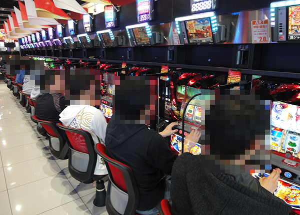 パチンココーナーをみると、1円パチンコで遊技をはじめるプレイヤーが多かった。