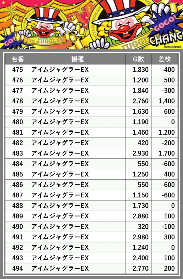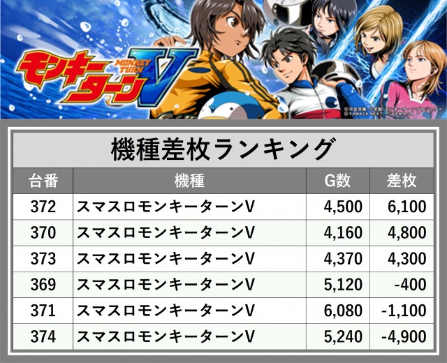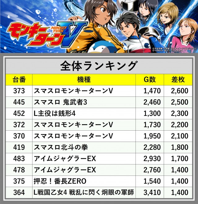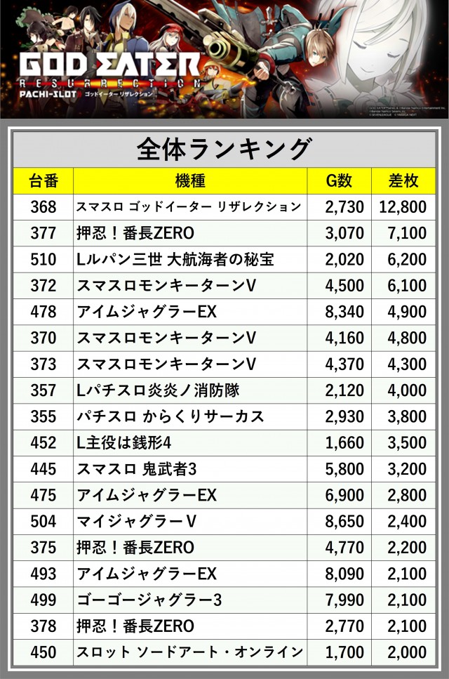 ※差枚数順に掲載しています