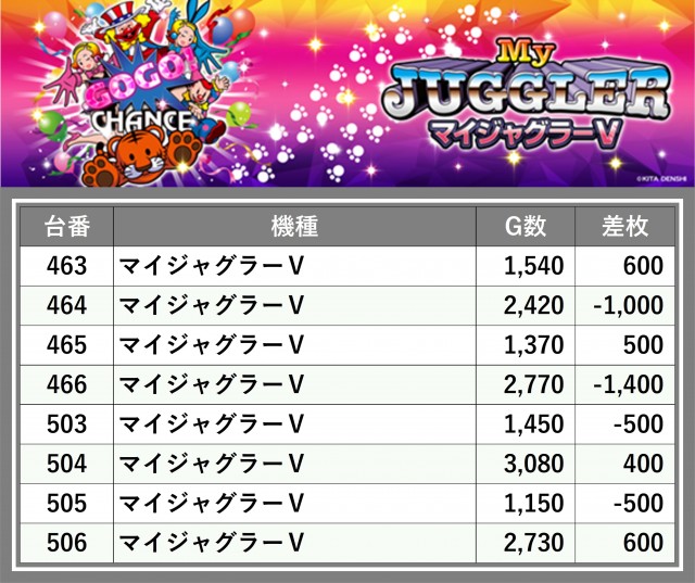 厳選された取材対象機種をはじめ、その他スロット全体から好記録が飛び出した!プレイヤーが楽しんだ1日を下記データにて振り返ってみて欲しい。