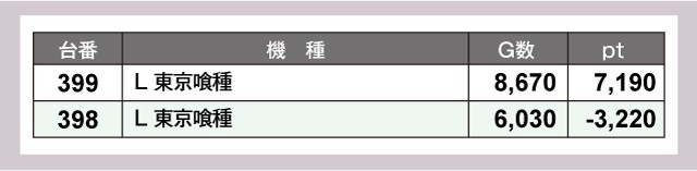 『L 東京喰種』では399番台が+7,190ptを獲得し、見事ランキング1位に輝いた。