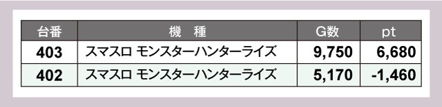 『スマスロ モンスターハンターライズ』も微笑ましい状況。403番台は+6,680ptと理想的な展開を迎えていた。