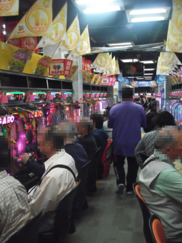 1円パチンコは年配層を中心に親しまれており、人気機種の新台も導入するなど力の入れ具合も感じられた。