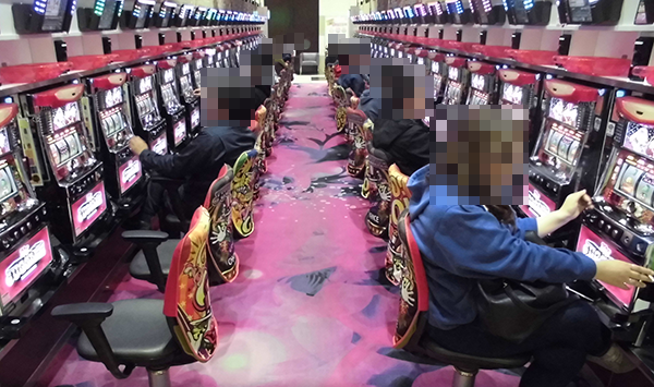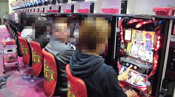 夕方頃の1000円/47枚パチスロをみてみると、新台の「押忍!番長3」が満席。機種の特徴を活かしているようなプレイヤーが目立ち、ひときわ活気づいていた。