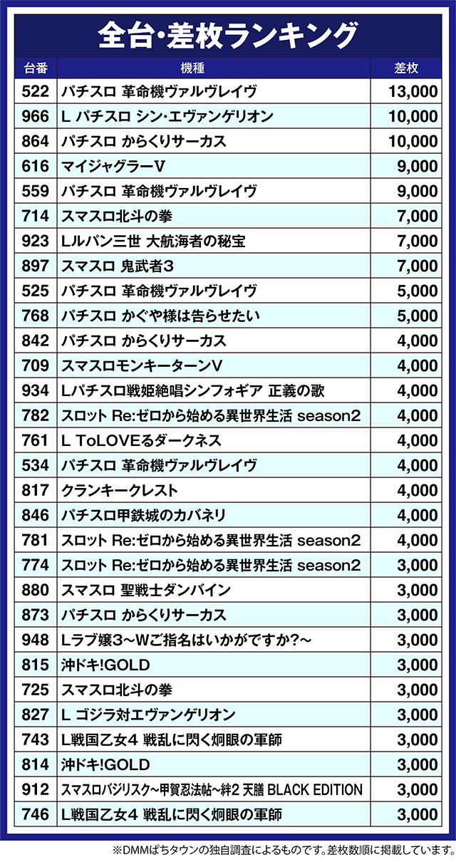 ※なお、本記事中のデータは全てDMMぱちタウンの独自調査によるものです