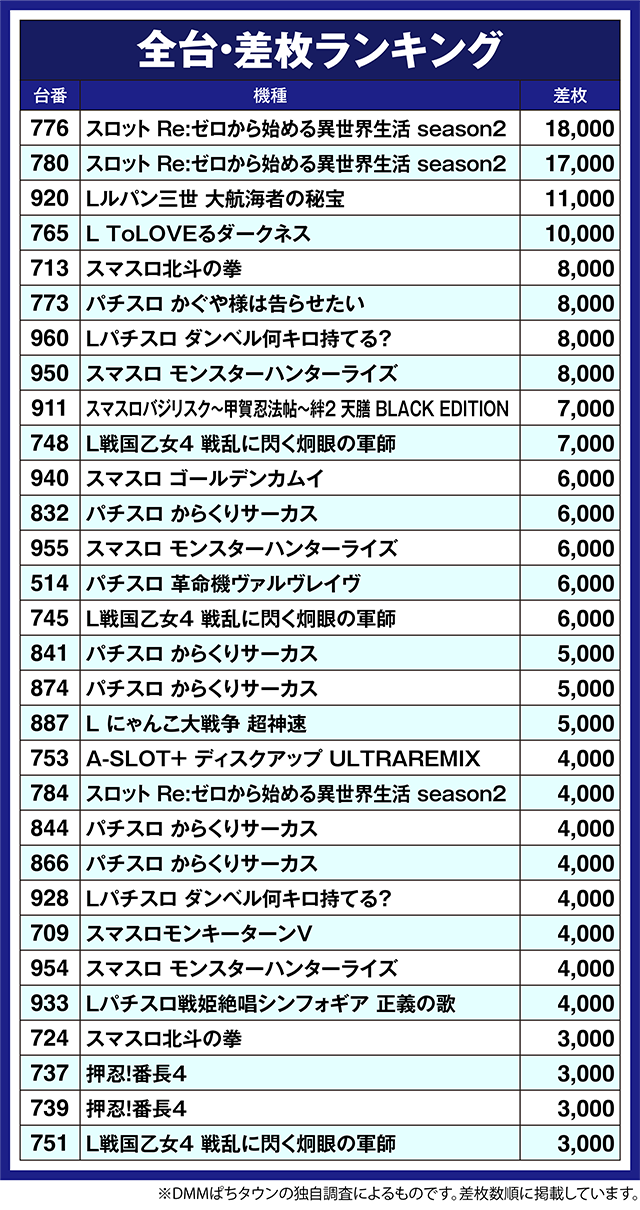 ※なお、本記事中のデータは全てDMMぱちタウンの独自調査によるものです
