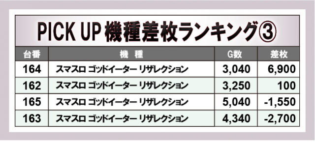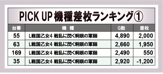 優秀機種として取り上げた『L戦国乙女4 戦乱に閃く炯眼の軍師』『Lパチスロ ダンベル何キロ持てる?』『スマスロ ゴッドイーター リザレクション』の3機種は、いずれもしっかりとポテンシャルを解放していた様子が窺え、店内の盛り上がりに貢献していた機種と言える。