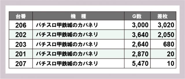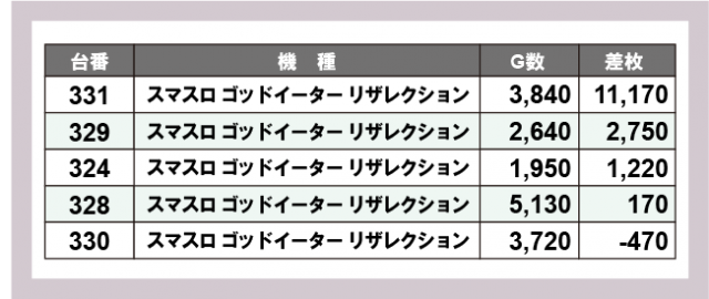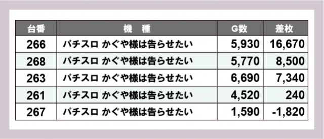 ※差枚数順に掲載しています