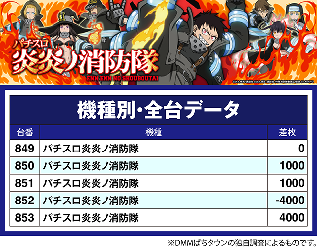 「パチスロ炎炎ノ消防隊」は、853番台が4,000pt。