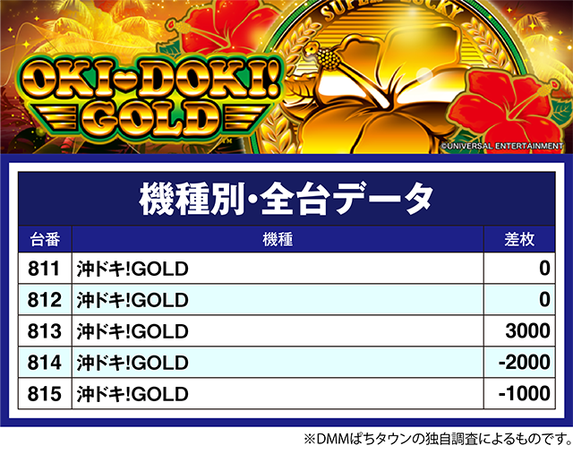 「沖ドキ!GOLD」では、813番台が3,000pt。