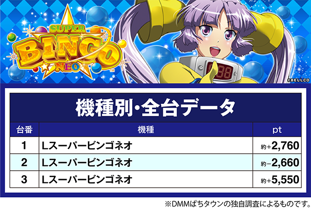 「Lスーパービンゴネオ」の3番台が約+5,500ptオーバー。