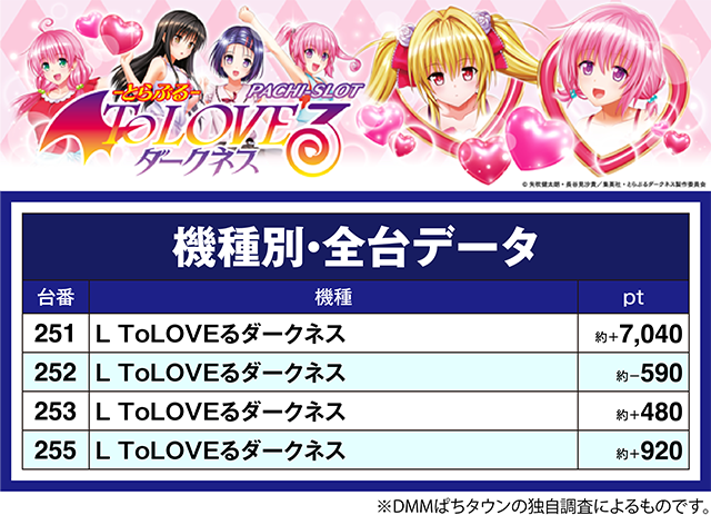 「L ToLOVEるダークネス」では、251番台が約+7,049pt。
