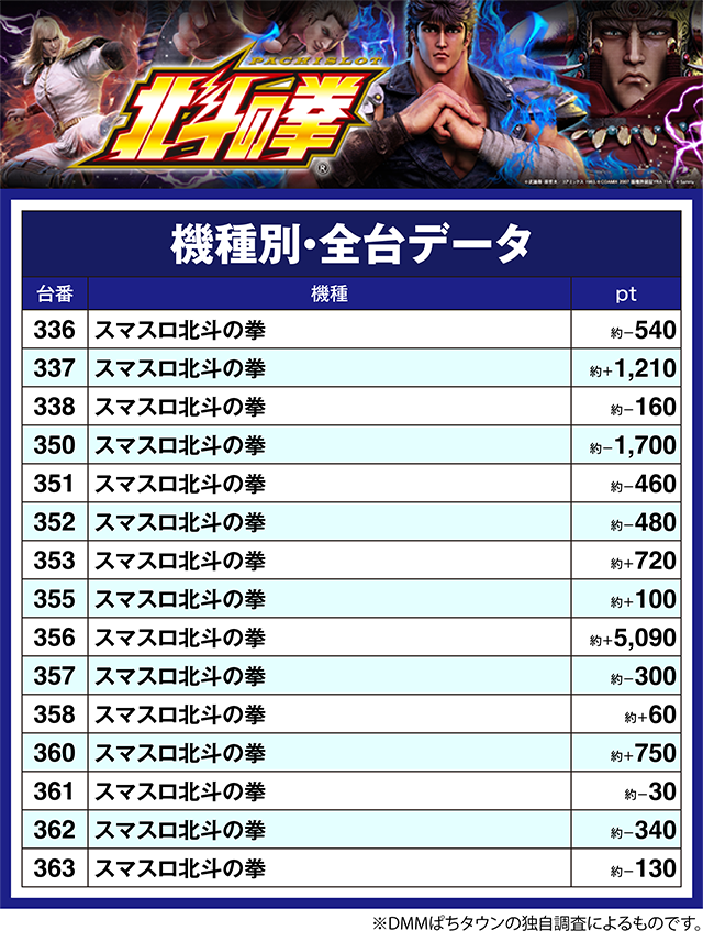 多くの台がプラスとなった「スマスロ北斗の拳」でも、約+5,000ptを超えた台を確認した。
