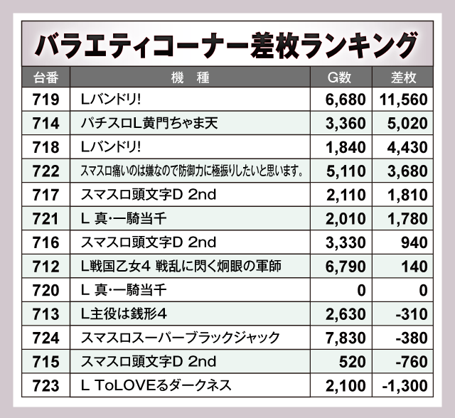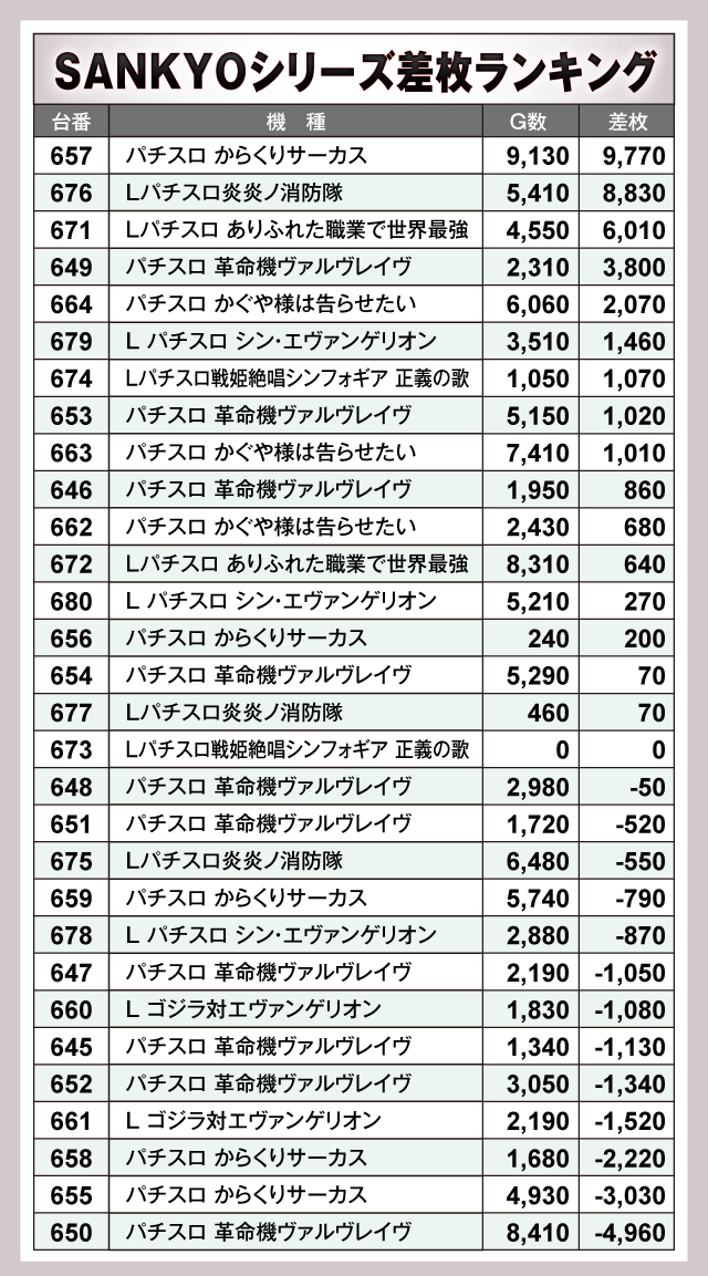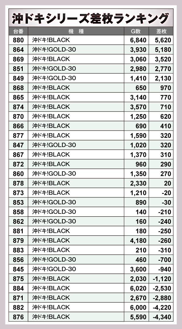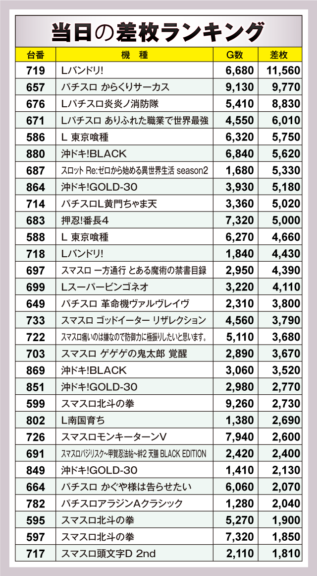 ※差枚数順に掲載しています。
