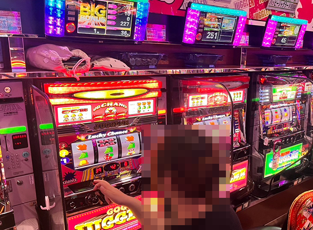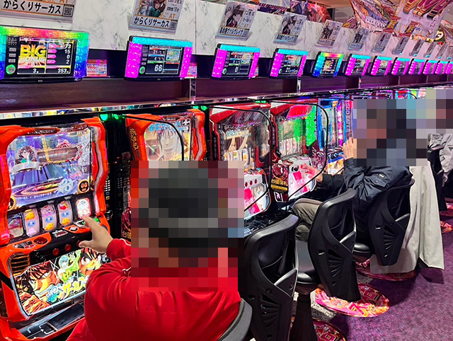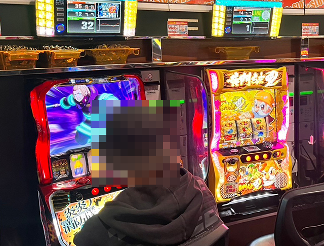 取材時の「パチスロ炎炎ノ消防隊」に、3箱以上の持ち玉を使って遊技をおこなっている姿があった。