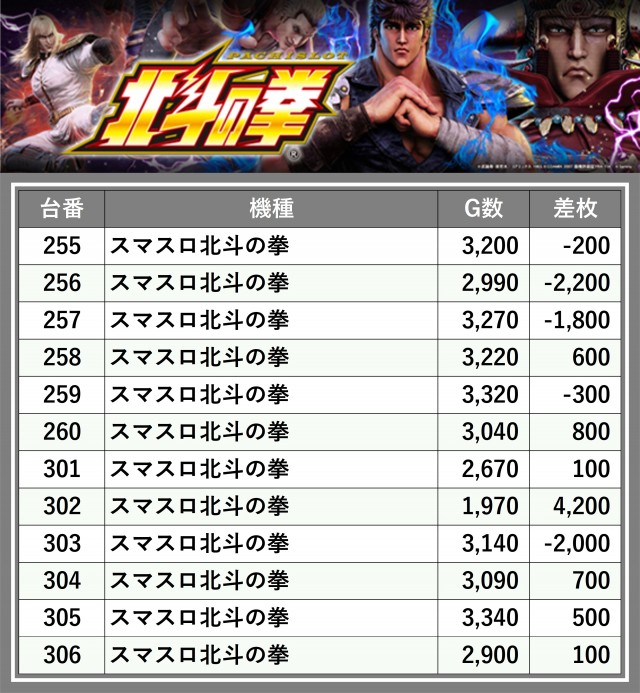 ※台番順に掲載しています