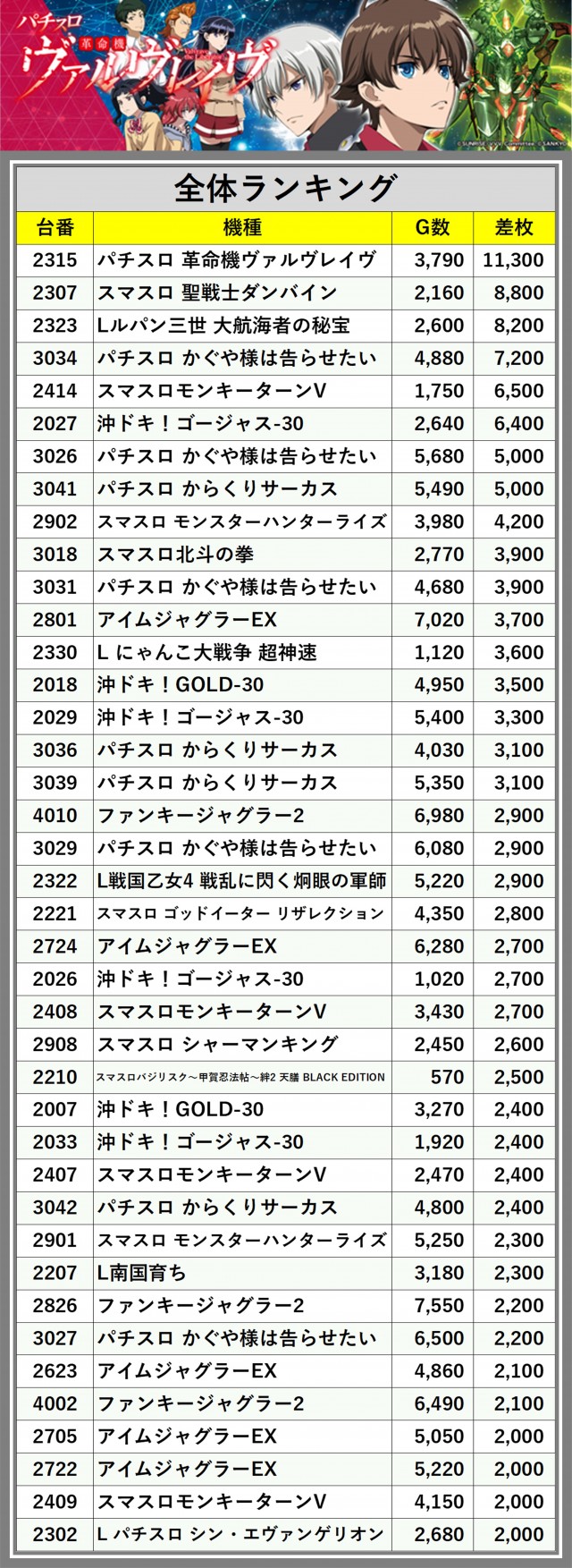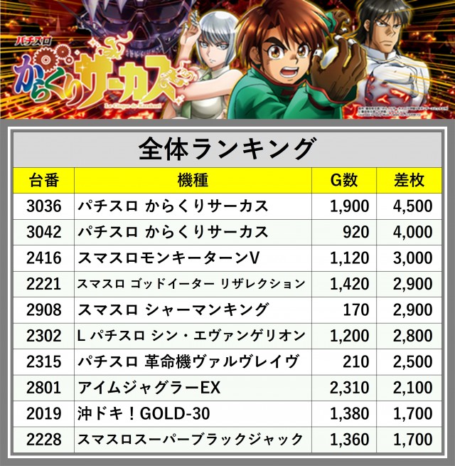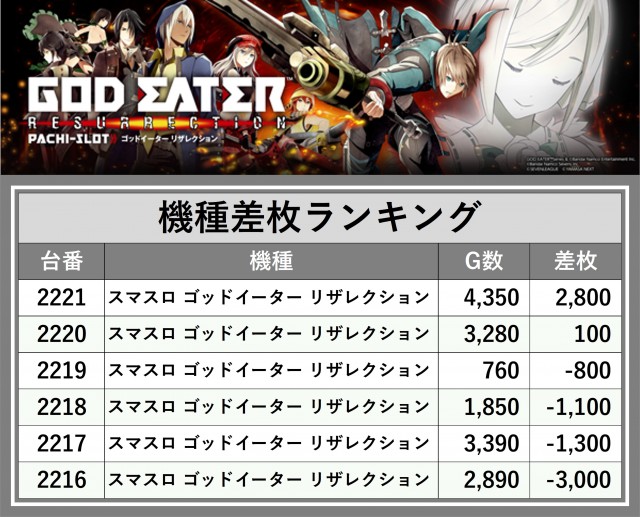 厳選された取材対象機種をはじめ、その他スロット全体から好記録が飛び出した!プレイヤーが楽しんだ1日を下記データにて振り返ってみて欲しい。