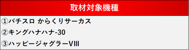 厳選された取材対象機種をはじめ、その他スロット全体から好記録が飛び出した!プレイヤーが楽しんだ1日を下記データにて振り返ってみて欲しい。