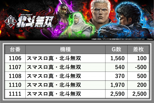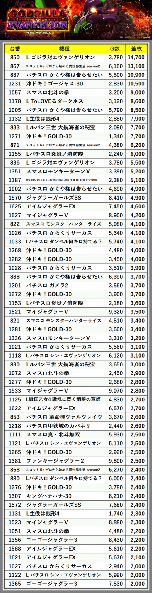 厳選された取材対象機種をはじめ、その他スロット全体から好記録が飛び出した!プレイヤーが楽しんだ1日を下記データにて振り返ってみて欲しい。