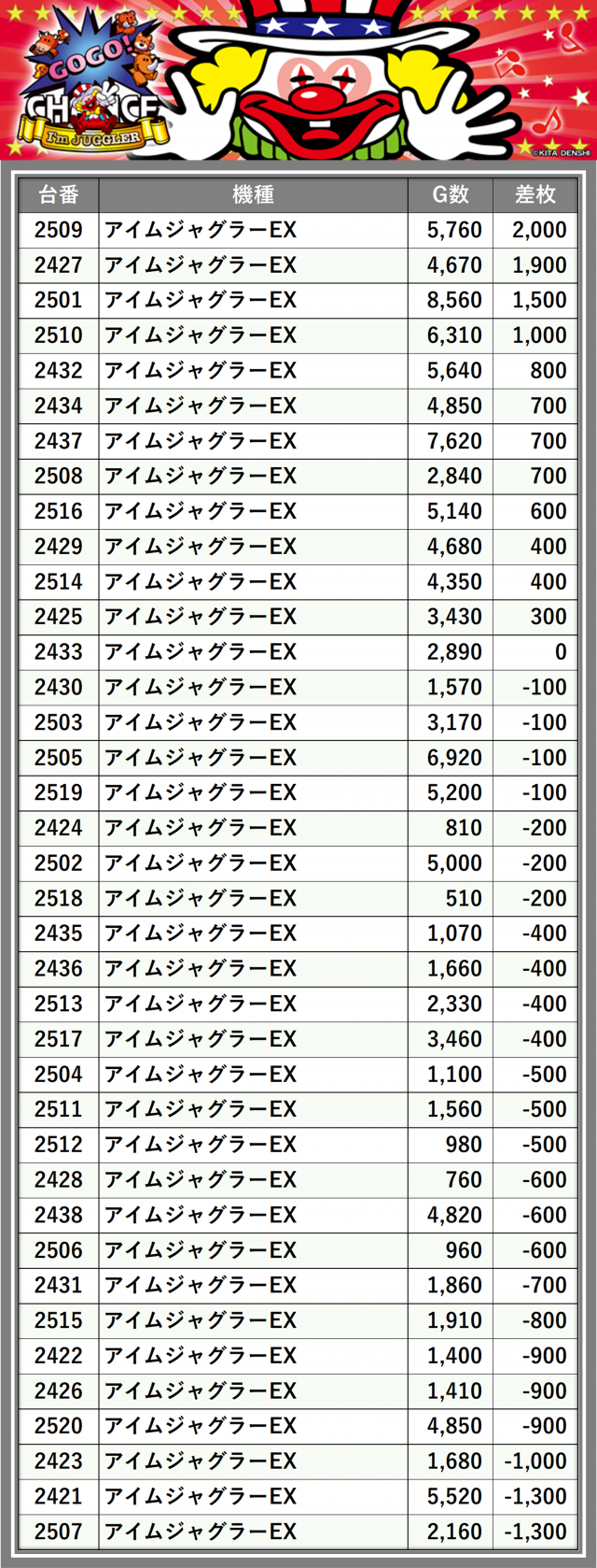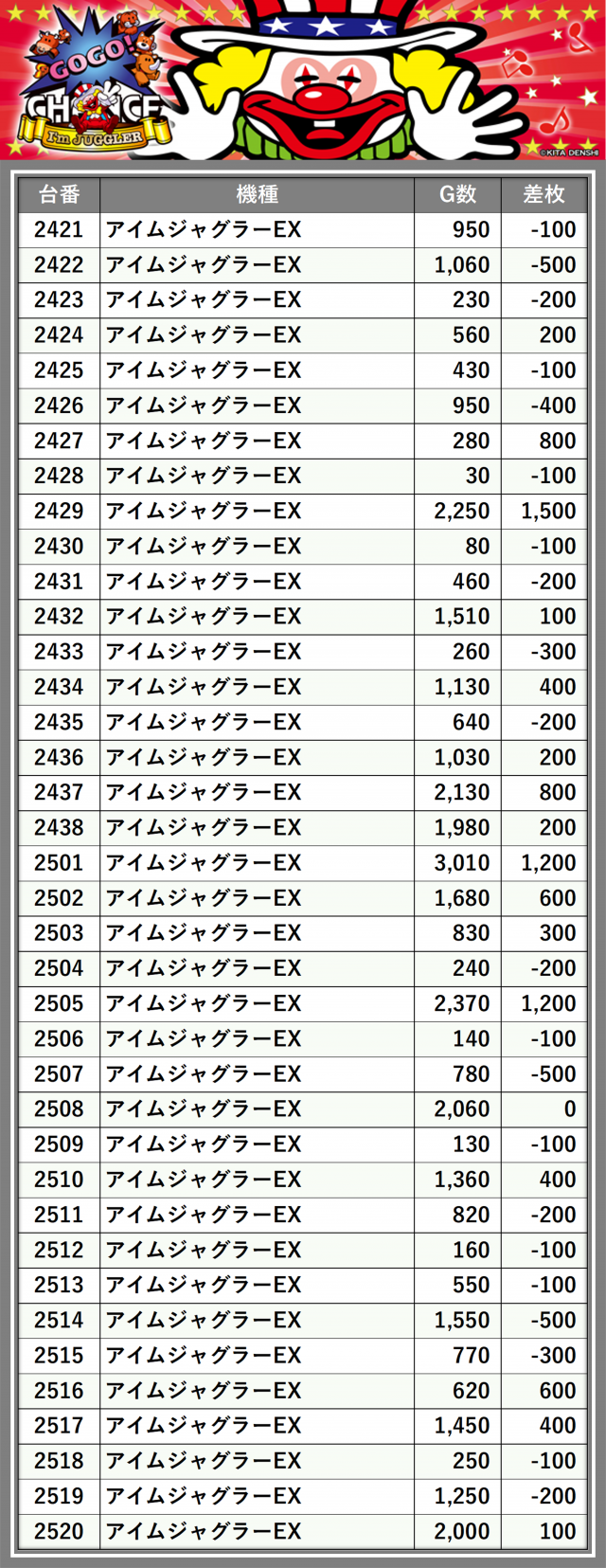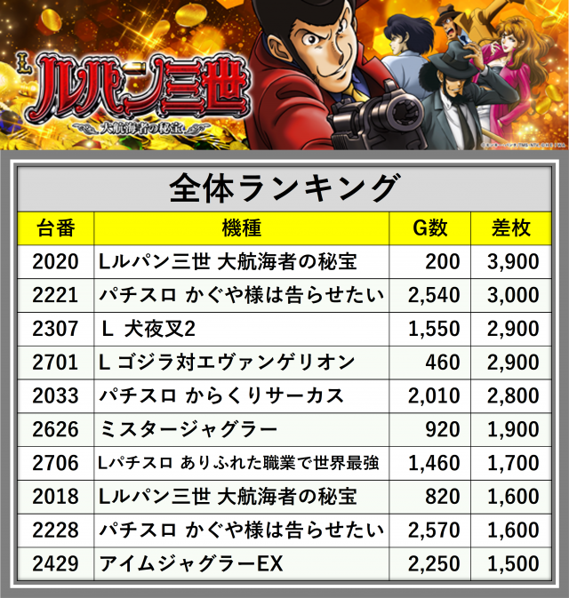 厳選された取材対象機種をはじめ、その他スロット全体から好記録が飛び出した!プレイヤーが楽しんだ1日を下記データにて振り返ってみて欲しい。