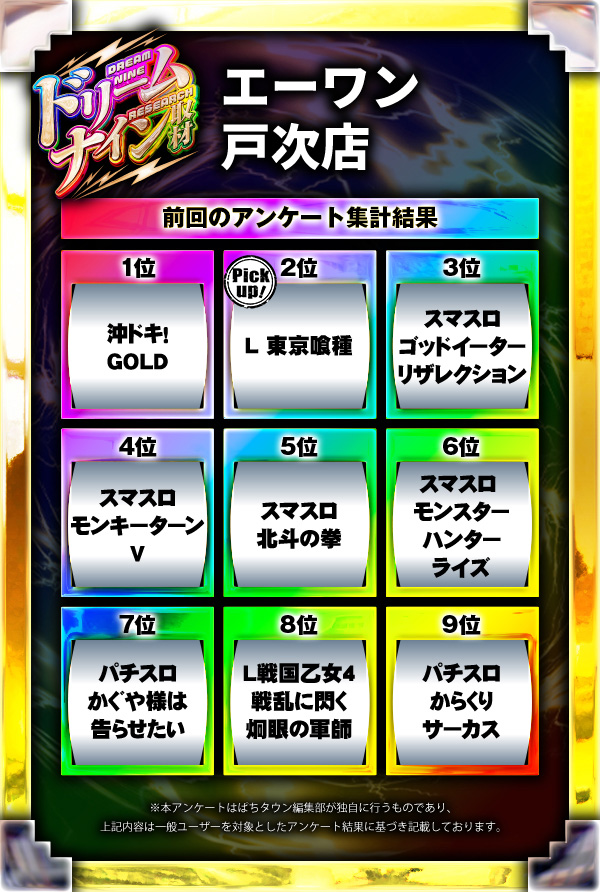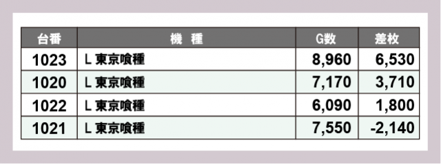 ※差枚数順に掲載しています