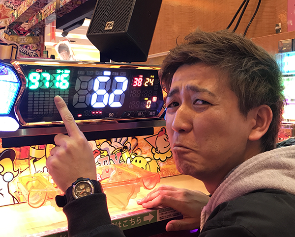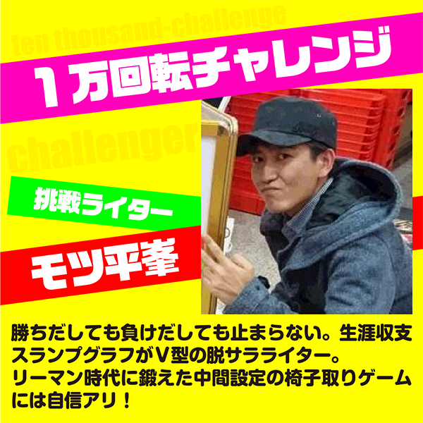 回転数、収支ともにコメントのしようがない結果となってしまい、表情でごまかすモツ平峯であった。