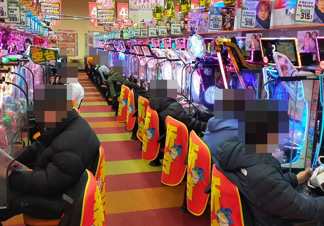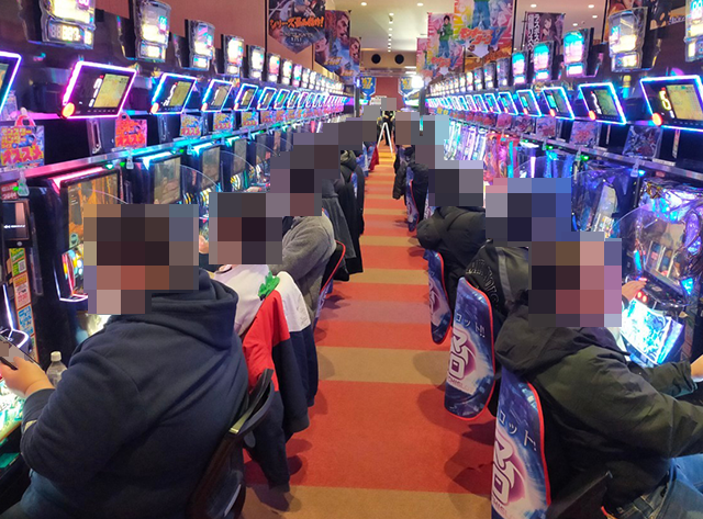 開店直後のホール内をみると、最新機種の「L 東京喰種」や「スマスロ シャーマンキング」がいち早く満席!!