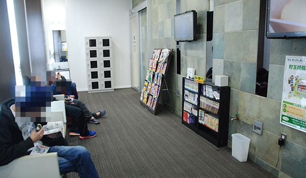 また、レストコーナーにはテレビが設置してあるほかに、マンガ本や雑誌などが用意されている。リラックスしている様子のプレイヤーがみられ、遊技以外の時間も快適に過ごせていたようだ。