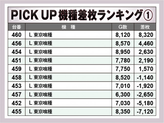 『L 東京喰種』『スマスロ シャーマンキング』『スマスロスーパーブラックジャック』『Lパチスロ ありふれた職業で世界最強』は登場して間もない新顔だが、さっそく優秀機種として存在感をアピール。全台プラス差枚数をマークする台もあり、その活躍ぶりに触発されてか、『スマスロ北斗の拳』『スマスロ ゴッドイーター リザレクション』『パチスロ からくりサーカス』といった既存の実力者も大きな熱気を放っていた。