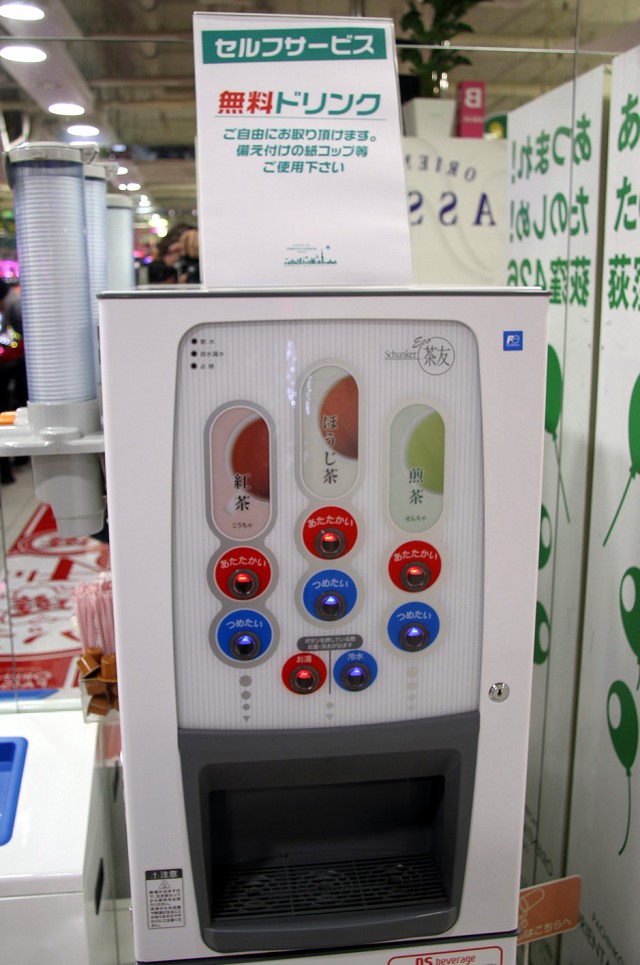 1Fの広い休憩スペースには大画面テレビ。無料のロッカーに、冷温両方の「紅茶」「ほうじ茶」「煎茶」の無料サービスも!