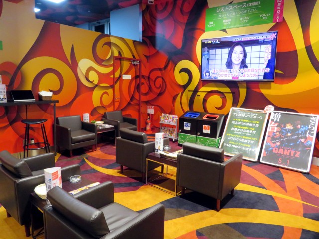 2Fにも休憩スペースがしっかりと設置。ふかふかソファーに、漫画や雑誌がズラ〜リ!