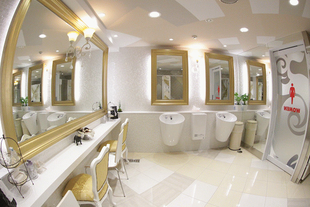 女性の方は、ゴージャスなパウダールームが完備された女性用の化粧室が一見の価値あり!!!