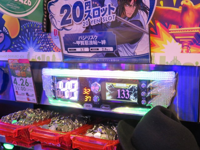 そして中央に『パチスロ攻殻機動隊S.A.C 2nd GIG』『押忍!サラリーマン番長』、『アナザーゴッドポセイドン-海皇の参戦-』と人気の新台が並び、手前の階段側には『バジリスク〜甲賀忍法帖〜絆』と『SLOTバジリスクⅢ〜甲賀忍法帖〜』の大人気バジ2機種で構成されるバジリスクコーナー。