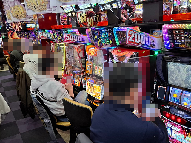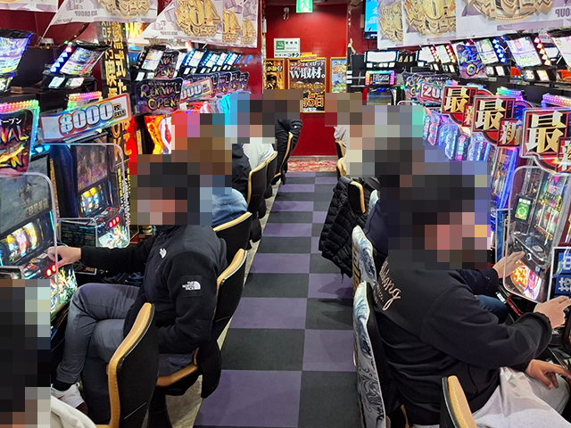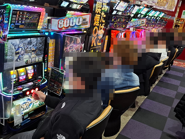 パチスロコーナーをまわっていると、さまざまな機種で、活躍をしているプレイヤーの姿を目にした。