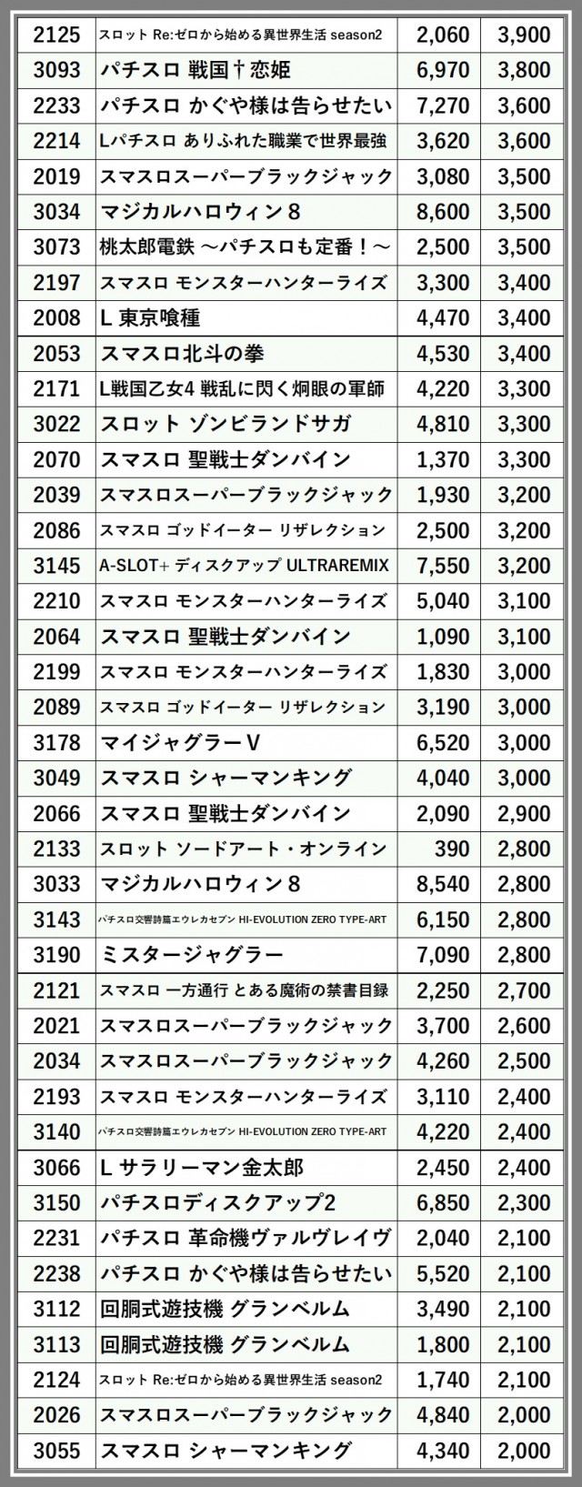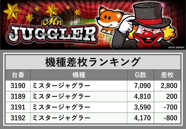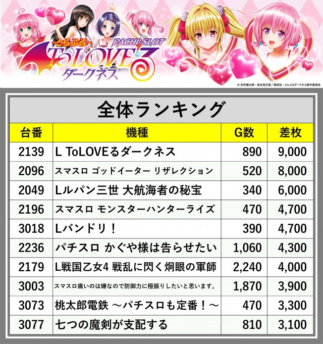 厳選された取材対象機種をはじめ、その他スロット全体から好記録が飛び出した!プレイヤーが楽しんだ1日を下記データにて振り返ってみて欲しい。